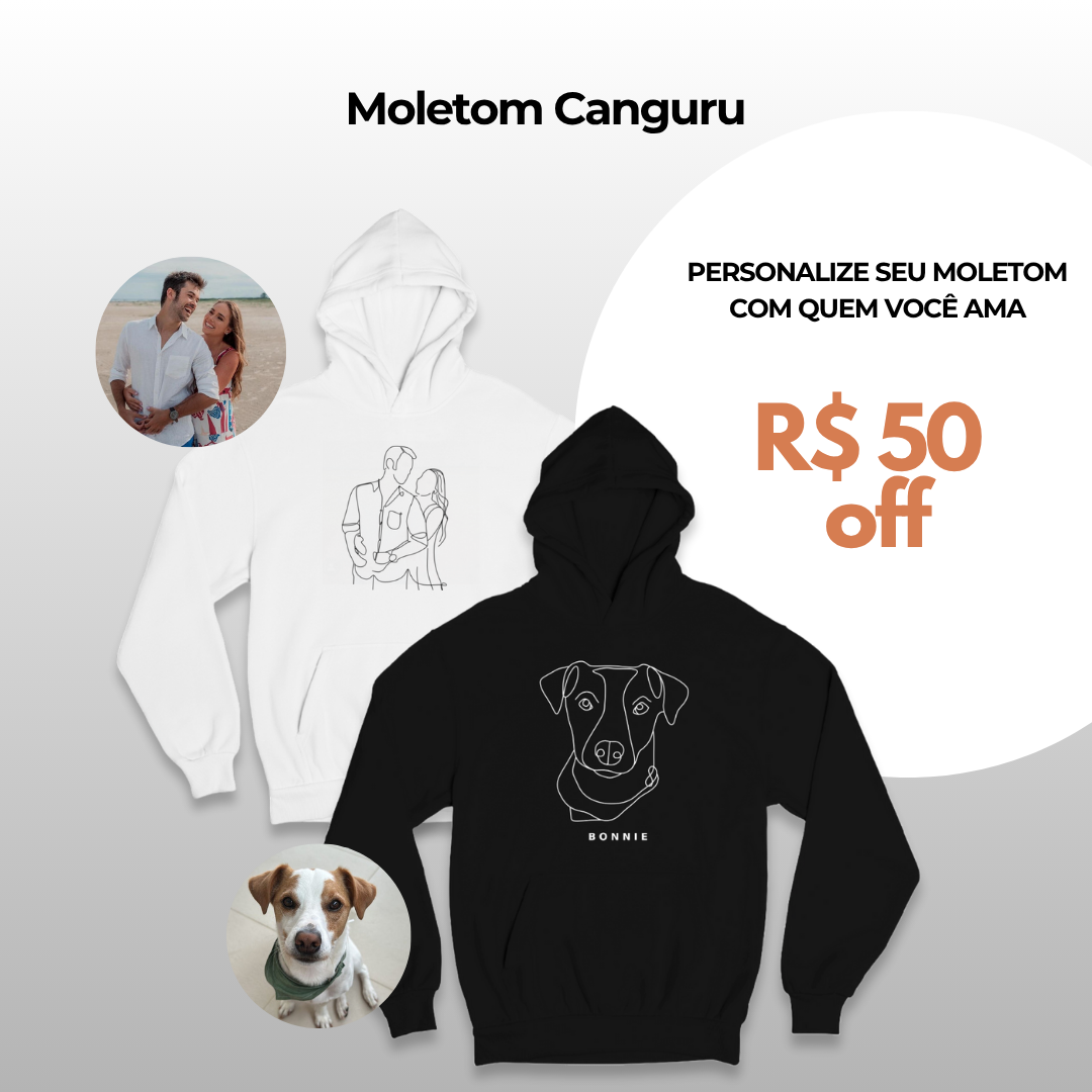 "Transformei minha foto favorita do meu cachorro em arte em um moletom. A qualidade é incrível e recebo elogios por onde vou!"